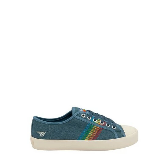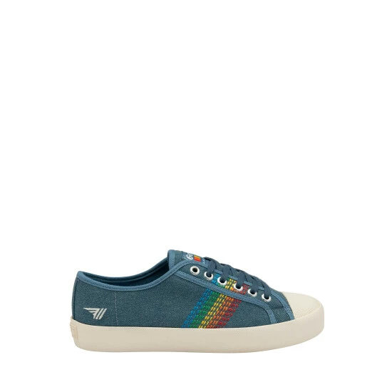 Taking references from the ‘70s, Gola’s best selling Coaster Rainbow gets an update this season. Presented with a canvas upper and a contrasting stitched rainbow to the side, this classic Gola heritage trainer is super versatile.