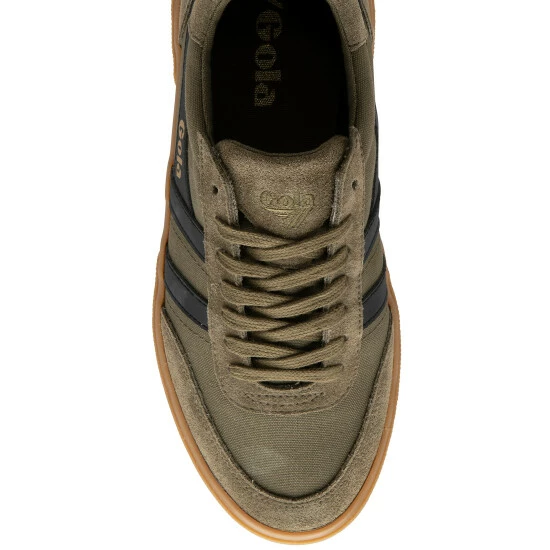 A men’s canvas trainer option is always a staple in the season’s footwear arsenal and this new Gola style is a great choice. This canvas trainer, with complementing suede trims and wingflash branding is a season go to.