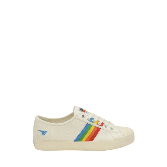 This classic silhouette features an off white upper with a rainbow detail to the side and Gola branding to the tongue and the side of the heel.