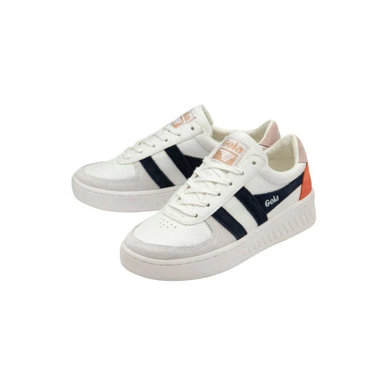 Combining a classic court trainer silhouette with the seasonal trend for colour pops is this Gola women’s trainer. The white upper is combined with bold coloured suede panels across the Gola wingflash branding and heel tab.