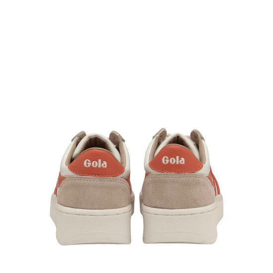 Grandslam Pure features a suede top cap in pink blossom and a contrasting coral side wingflash nestled on an off white mid sole, finished with Gola heritage branding call outs. Gola Grandslam Pure for women is an understated, yet dependable trainer option.