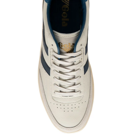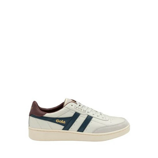 Introducing a new leather trainer option to the Gola Classics men’s collection. The contrasting heel tab and Gola wingflash trim give this style a classic court look and complement the white leather upper.
